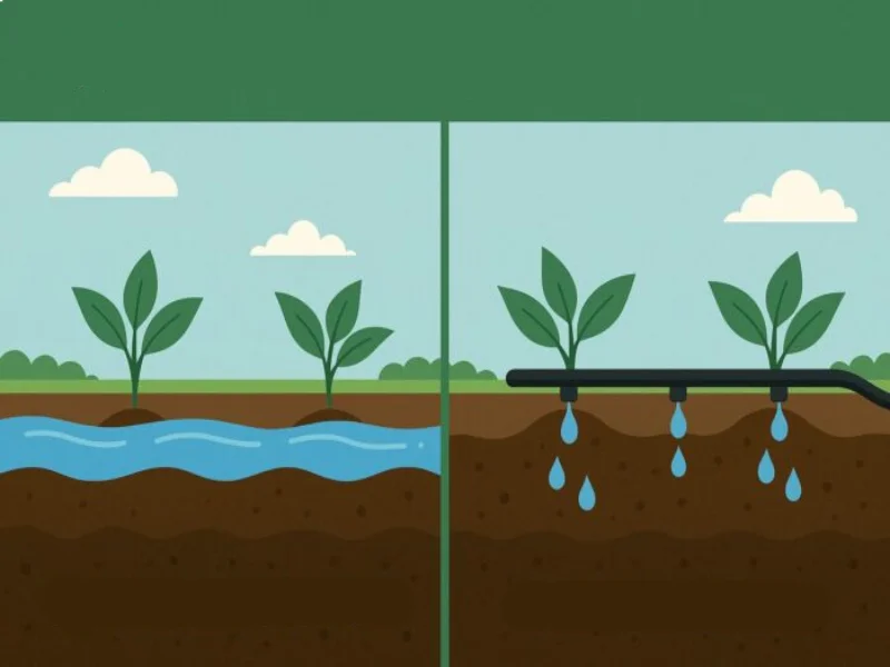 صرفهجویی در آب: همانطور که اشاره شد در روش آبیاری قطرهای، آب به طور مستقیم به ریشه گیاهان میرسد و از هدر رفتن آن در اثر تبخیر و رواناب جلوگیری میشود. این روش با کاهش تبخیر و توزیع دقیق آب به منطقه ریشه، مصرف آب را بهینه میکند و موجب صرفهجویی قابل توجهی در منابع آبی میشود.